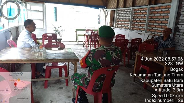 Batu Bara | Agar terjalinya hubungan baik antara Babinsa dan Masyarakat Desa untuk menunjang Tupoksi Apter, dalam kesempatan ini seperti yang dilakukan oleh Personel Bintara Pembina Desa (Babinsa) Koramil 05/Tanjung Tiram jajaran Kodim 0208/Asahan Kopka Basiyran turun kewilayah binaan untuk melaksanakan kegiatan Komunikasi Sosial (Komsos) bersama dengan warga Masyarakat desa binaan, bersama dengan Bapak Badri, Bapak Abubakar dan Ibu Yuliana, kegiatan tersebut yang dilaksanakan bertempat di Desa Suka Maju Kecamatan Tanjung Tiram Kabupaten Batu Bara, Sabtu (04/06/2022).
