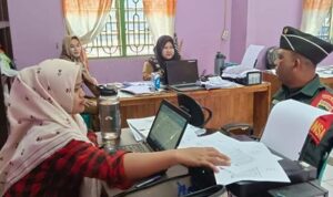 Tanjung Balai  |  Silahturahmi yang kami laksanakan ini bertujuan untuk menjalin keharmonisan dan kerjasama yang baik dengan aparat setempat, serta melaksanakan pengelolaan data warga yang layak mendapatkan bantuan dampak Covid-19, seperti yang dilaksanakan oleh Personel Bintara Pembina Desa (Babinsa) Koramil  08/Pulau Buaya jajaran Kodim 0208/Asahan Sertu Suwardi turun kewilayah binaan untuk melaksanakan kegiatan komunikasi Sosial (Komsos) bersama dengan pegawai kantor Camat Tanjung balai membahas Pemuktahiran Data Masyarakat yang sudah di vaksin atau belum di Vaksin, kegiatan tersebut yang dilaksanakan bertempat di Kelurahan Kapias Pulau Buaya Kecamatan Teluk Nibung Kota Tanjung Balai, Kamis (23/09/2021).