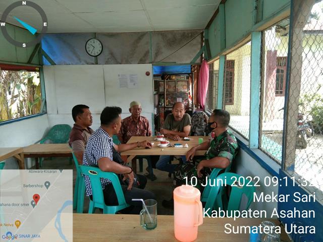 Asahan | Kegiatan Komsos ini bertujuan untuk menjalin silaturrahmi dan mempererat hubungan kekeluargaan dengan masyarakat khususnya tokoh agama diwilayah desa binaan, dalam hal ini seperti yang dilakukan oleh Personel Bintara Pembina Desa (Babinsa) Koramil 13/Buntu Pane jajaran Kodim 0208/Asahan Serka Susastra melaksanakan Komsos dengan Tokoh agama dan tokoh masyarakat untuk menjalin siratuhrami yang lebih erat dengan Babinsa, bersama dengan Tokoh Agama Bapak Anuar dan Tokoh Masyarakat Bapak Zul Amri, kegiatan tersebut yang dilaksanakan bertempat di Desa Mekar Sari Kecamatan Buntu Pane Kabupaten Asahan, Jumat (10/06/2022).