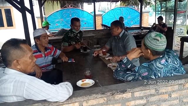 Batu Bara  |  Dengan rutin melaksanakan komsos sembari berinteraksi dengan warga di desa binaan, maka kita dapat dengan cepat memperoleh segala informasi yang sedang berkembang ditengah-tengah masyarakat, seperti halnya yang dilakukan oleh Personel Bintara Pembina Desa (Babinsa) Koramil 03/Lima Puluh jajaran Kodim 0208/Asahan Serka IG Sitorus beserta Perangkat Desa turut serta melaksanakan kegiatan Komunikasi Sosial (Komsos) kepada Tokoh Masyarakat dan warga dalam rangka membahas Kamtibmas agar wilayah Aman dan Kondusif sehingga masyarakat Produktif, bersama dengan Tomas (Bapak Haripin), Kadus 05 (Bapak Somat) dan Warga desa Simpang Gambus, kegiatan tersebut yang dilaksanakan bertempat di Simpang Gambus Kecamatan Lima Puluh Kabupaten Batu Bara, Kamis (02/06/2022).