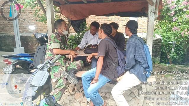 Batu Bara | Dengan rutin melaksanakan komsos sembari berinteraksi dengan warga di desa binaan, maka kita dapat dengan cepat memperoleh segala informasi yang sedang berkembang ditengah-tengah masyarakat, seperti halnya yang dilakukan oleh Personel Bintara Pembina Desa (Babinsa) Koramil 03/Lima Puluh jajaran Kodim 0208/Asahan Serka Ely turun kewilayah binaan untuk melaksanakan kegiatan Komunikasi Sosial (Komsos) bersama dengan Tokoh Pemuda dan Kepling lll dalam rangka berkoordinasi tentang penempatan pos siskamling baru bersama dengan Toko Pemuda Bapak Syahrianto, Kepling III Bapak Joni Sianifar dan Masyarakat Kelurahan Lima Puluh, kegiatan tersebut yang dilaksanakan bertempat di Kelurahan Lima Puluh Kecamatan Lima Puluh Kabupaten Batu Bara, Selasa (26/04/2022).