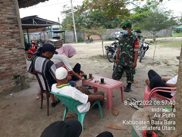 Batu Bara | Dengan rutin melaksanakan komsos sembari berinteraksi dengan warga di desa binaan, maka kita dapat dengan cepat memperoleh segala informasi yang sedang berkembang ditengah-tengah masyarakat, seperti halnya yang dilakukan oleh Personel Bintara Pembina Desa (Babinsa) Koramil 02/Air Putih jajaran Kodim 0208/Asahan Serda Indra turun kewilayah binaan untuk melaksanakan kegiatan Komunikasi Sosial (Komsos) bersama dengan Tokoh Masyarakat dan Masyarakat binaan dalam rangka berkoordinasi tentang penempatan pos siskamling baru serta membicarakan prihal kantibmas dan kerukunan bertetanga bersama dengan Tomas Bapak Mahmut dan Masyarakat Kelurahan Indra Sakti, kegiatan tersebut yang dilaksanakan bertempat di Kelurahan Indra Sakti Kecamatan Air Putih Kabupaten Batu Bara, Sabtu (08/01/2022).