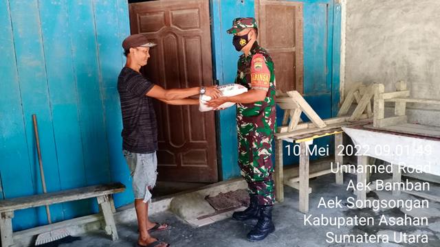 Asahan | Prajurit TNI Babinsa dalam hal ini melaksanakan komunikasi sosial anjangsana dengan warga binaan guna meningkatkan hubungan baik untuk kelancaran tugas, dalam hal ini seperti yang dilakukan oleh Personel Bintara Pembina Desa (Babinsa) Koramil 15/Bandar Pulau jajaran Kodim 0208/Asahan Sertu Syahdan turun kewilayah binaan untuk melaksanakan kegiatan Komunikasi Sosial (Komsos) dan sekaligus memberikan bantuan berupa beras khususnya kepada warga kurang mampu bantuan ini sekedar meringankan beban masyarakat dan hubungan baik antara masyarakat dengan TNI bersama dengan Ibu Ngatiyem dan Bapak Bambang, kegiatan tersebut yang dilaksanakan bertempat di Desa Aek Bamban Kecamatan Aek Songsongan Kabupaten Asahan, Selasa (10/05/2022).