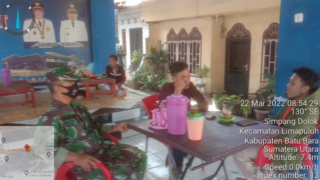 Batu Bara | Guna memperkuat kerjasama dan kekompakan bersama seluruh lapisan masyarakat dalam menjaga keamanan dan ketertiban (Kamtibmas) di wilayah binaannya, dalam hal ini seperti yang dilakukan oleh Personel Bintara Pembina Desa (Babinsa) Koramil 03/Lima Puluh jajaran Kodim 0208/Asahan Serka Agus Fajar turun kewilayah binaan untuk melaksanakan kegiatan Komunikasi Sosial (Komsos) dan memberikan arahan kepada Tokoh Pemuda desa Simpang Dolok saudara Armansyah agar berperan aktif dan berkreatifitas para pemuda dalam hal-hal positif, jauhi penyalah gunaan narkoba jenis apapun demi memberi contoh generasi pemuda selanjutnya, kegiatan tersebut yang dilaksanakan bertempat di Desa Simpang Dolok Kecamatan Datuk Lima Puluh Kabupaten Batu Bara, Selasa (22/03/2022).