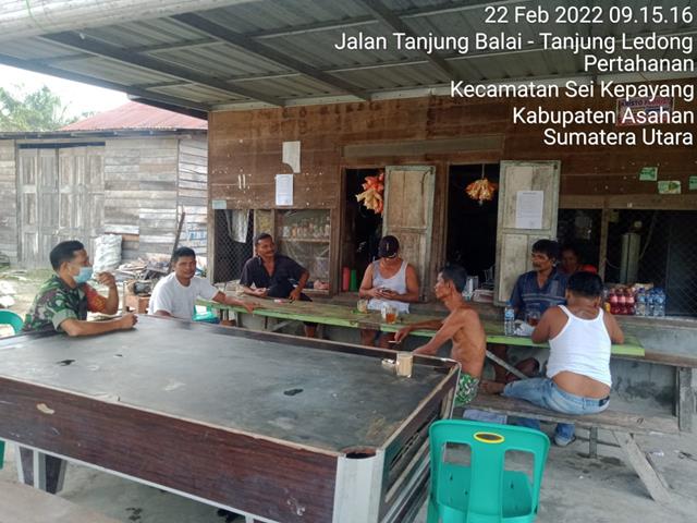 Dalam hal ini seperti yang dilakukan oleh Personel Bintara Pembina Desa (Babinsa) Koramil 10/Sei Kepayang jajaran Kodim 0208/Asahan Sertu M Simanjuntak turun kewilayah desa binaan untuk melaksanakan Komunikasi Sosial bersama dengan masyarakat Desa Perbangunan, membicarakan tentang ketertipan lingkungan perkampungan khusus nya pos skamling tiap-tiap pintu masuk dan pintu keluar. Guna menciptakan keamanan di wilayah Desa Binaan serta dengan memberikan himbauan kepada warga binaan agar selalu mematuhi protokol Kesehatan, kegiatan tersebut yang dilaksanakan bertempat di Kedai Kopi ibu Pandiangan Dusun I Desa Perbangunan Kecamatan Sei Kepayang Kabupaten Asahan, Selasa (22/02/2022).
