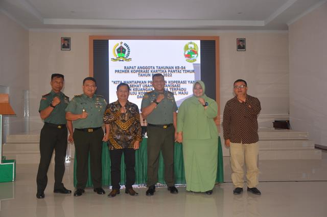 Pematang Siantar  |  Kegiatan RAT Ke-54 Primer Koperasi Kartika Pantai Timur Tahun Buku 2022, dengan mengusung Tema ” Kita mantabkan penataan Koperasi yang sehat usaha, organisasi dan keuangan secara terpadu menuju Koperasi, Mandiri, Maju dan Profesional “. kegiatan tersebut yang dilaksanakan bertempat di Aula Pantai Timur Korem 022/PT Jalan Asahan Km, 3.5 Nagori Siantar Estate Kecamatan SIantar Kabupaten Simalungun, Kamis (16/02/2023).