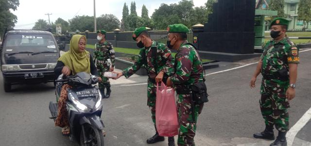 P.Siantar – Korem 022/Pantai Timur membagi-bagikan takjil (Makanan untuk berbuka puasa) kepada pengguna jalan di depan Makorem 022/PT Jalan Asahan Km 3,5 Kec.Siantar Kab.Simalungun, Jumat (22/04/2022) sore.