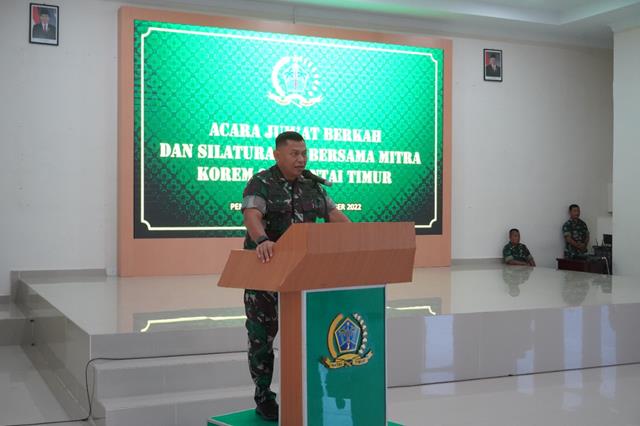 Pematang Siantar | Dalam rangka untuk meningkatkan hubungan silaturahmi dan membentuk kesetiakawanan dengan para Mitra Karib serta bersedekah untuk meraih pundi pundi amal kebaikan, dalam hal ini Komandan Korem (Danrem) 022/Pantai Timur Kolonel Inf Luqman Arief, S.I.P., bersama keluarga besar Korem 022/Pantai Timur melaksanakan acara Juma’t Berkah, Doa Bersama dalam rangka Ibadah Umroh Danrem 022/PT, Silaturahmi Bersama Mitra Korem dan berbagi Tali Asih dengan pemberian Santunan Tali Asih kepada Anak Yatim-piatu serta Syukuran Personel yang Berulang Tahun, kegiatan tersebut yang dilaksanakan bertempat di Aula Pantai Timur Makorem 022/PT Jalan Asahan Km 3,5 Nagori Siantar Estate Kecamatan Siantar Kabupaten Simalungun, Jumat (02/11/2022).