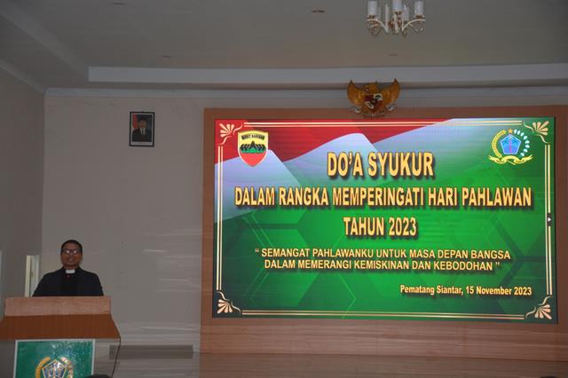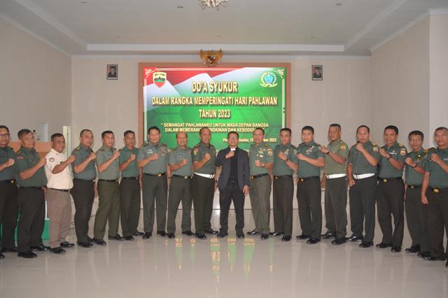 Pematang Siantar | Komando Resort Militer (Korem) 022/Pantai Timur menggelar Do’a Syukur dalam rangka memperingati Hari Pahlawan Tahun 2023, dengan mengusung Tema “Semangat Pahlawanku Untuk Masa Depan Bangsa Dalam Memerangi Kemiskinan dan Kebodohan”, kegiatan tersebut yang dilaksanakan bertempat di Aula Pantai Timur Korem 022/Pantai Timur Jalan Asahan Km. 3,5 Nagori Estate Kecamatan Siantar Kabupaten Simalungun, Rabu (15/11/2023).