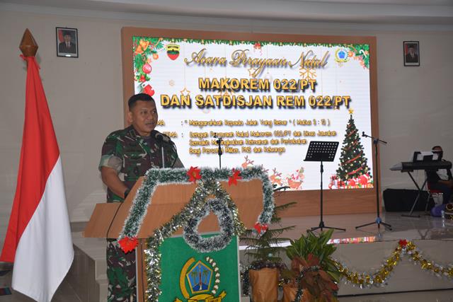 Sehubungan masih dalam suasana Natal dan Tahun Baru, perkenankan saya,  selaku Komandan Korem 022/PT dan Pribadi menyampaikan Selamat Merayakan Natal kepada segenap Prajurit dan Pegawai Negeri Sipil yang merayakannya, serta selamat Tahun Baru 1 Januari 2023 kepada kita sekalian. Mari kita jadikan tahun ini menjadi momentum dan sumber motivasi bagi kita semua untuk melaksanakan tugas lebih baik lagi dari tahun sebelumnya.