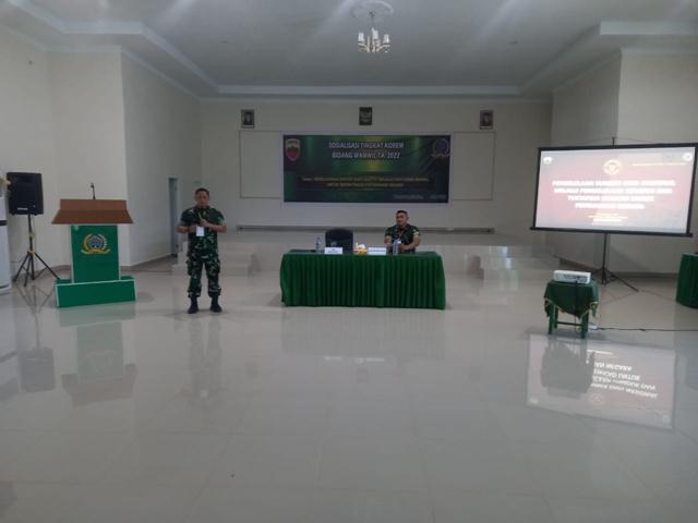 Danrem 022/PT Kolonel Inf Luqman Arief S.I.P yang diwakili Oleh Kepala Seksi Teritorial (Kasiter) Mayor Inf Fahroel Muhadi menyampaikan Sosialisasi yang dilaksanakan ini, bertujuan untuk menyamakan persepsi langkah kegiatan pembinaan teritorial khususnya bidang Wanwil yang harus dilakukan oleh Satkowil diwilayah untuk meningkatkan koordinasi dan komunikasi dengan Pemerintah Daerah dan instansi terkait untuk bersinergi dalam pembinaan teritorial secara berkesinambungan, sehingga akan mempermudah Satkowil dalam menjalankan perannya melaksanakan Pembinaan Teritorial di wilayah.