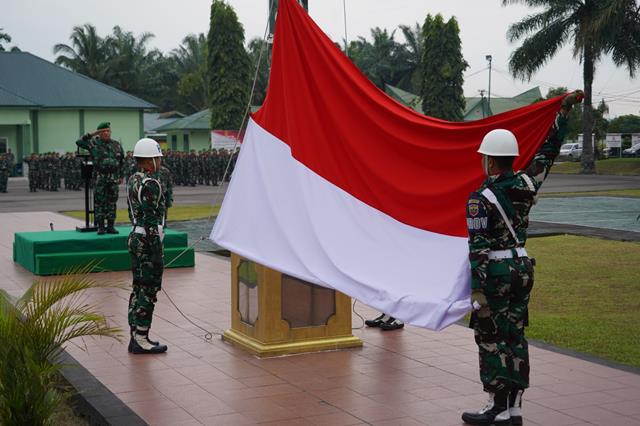 Pematang Siantar | Seluruh Prajurit Dan PNS Jajaran Korem 022/Pantai Timur laksanakan Upacara Bendera 17-an, bertindak sebagai Inspektur Upacara Kepala Staf Korem 022/Pantai Timur Letkol Inf T. Yoppy CA Hutasoit., S.E., kegiatan tersebut yang dilaksanakan bertempat di Lapangan Makorem 022/PT, Jalan Asahan Km, 3.5 Nagori Estate Kecamatan Siantar Kabupaten Simalungun, Jumat (17/11/2023).