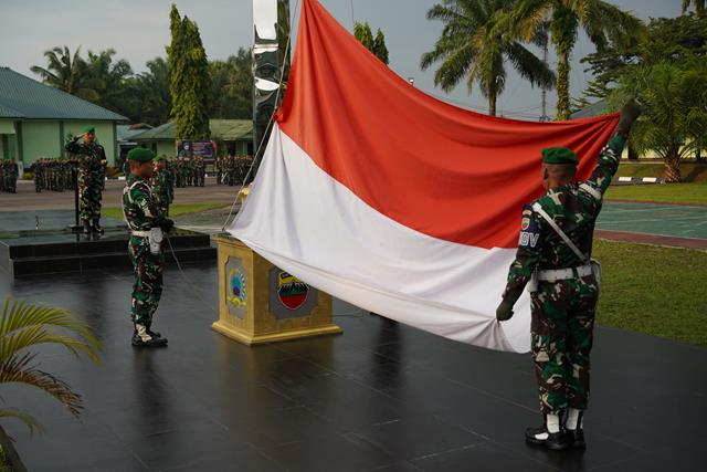 Pematangsiantar | Upacara bendera merupakan salah satu upaya untuk mewujudkan tujuan yang mencakup nilai-nilai penanaman sikap disiplin, kerja sama, rasa percaya diri, dan tanggung jawab. Dengan begitu, hal ini dapat mendorong lahirnya sikap dan kesadaran berbangsa dan bernegara serta cinta tanah air di kalangan prajurit TNI khususnya Matra Darat. Korem 022/Pantai Timur melaksanakan Upacara Bendera Senin diawal bulan September sebagai wujud kesiapan dalam menjaga kedaulataan negara dan keutuhan NKRI, kegiatan tersebut yang dilaksanakan bertempat di halaman Makorem, Jalan Asahan Km. 3,5 Nagori Siantar Estate Kecamatan Siantar Kabupaten Simalungun, Senin (02/09/2024).