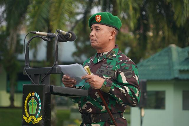 Pematang Siantar | Komando Resor Militer (Korem) 022/Pantai Timur melaksanakan Upacara Bendera Tujuh Belasan, bertindak sebagai Inspektur Upacara Komandan Detasemen Kesehatan Wilayah Pematangsiantar (Dandenkesyah) 01.04.01, Letkol Ckm Heri Prasetyo bertempat di Lapangan Upacara Makorem 022/Pantai Timur Jalan Asahan Km 3,5 Nagori Siantar Estate Kecamatan Siantar Kabupaten Simalungun, Senin (17/04/2023).