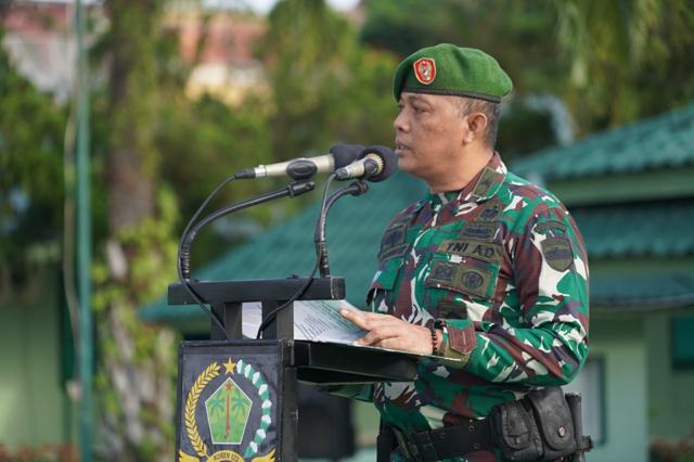 Tampak Hadir dalam Upacara tersebut Para Kasi Korem 022/PT,Para Kasatdisjan Rem 022/PT,Perwira,Bintara,Tamtama dan PNS Jajaran Korem 022/PT.