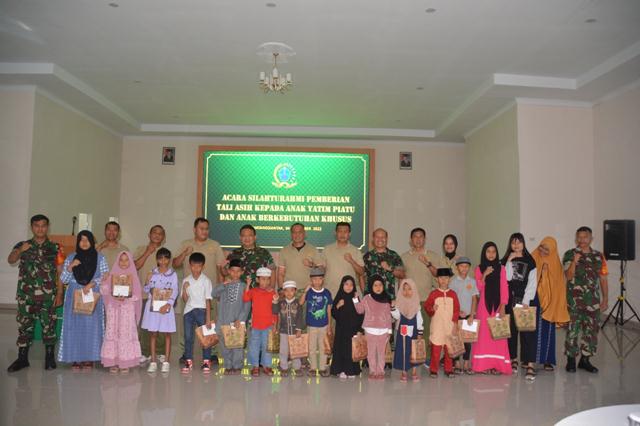 Oleh karena itu, bingkisan yang kami berikan nanti, mungkin tidak seberapa, jangan dinilai dari harga dan jumlahnya, namun ini merupakan suatu wujud perhatian dan kasih sayang Keluarga Besar Korem 022/PT, mudah-mudahan dapat membantu kebutuhan anak-anak sekalian.