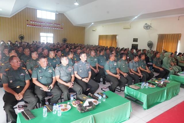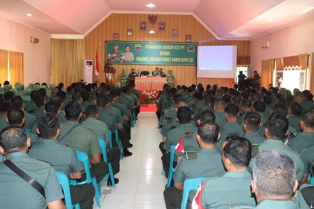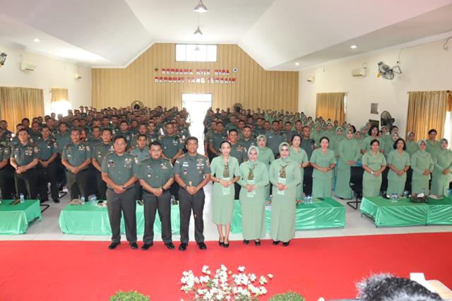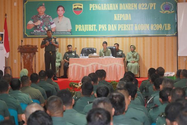 Labuhan Batu | Dalam Kunjungan Kerja Perdana Komandan Korem (Danrem) 022/Pantai Timur Kolonel Inf Agustatius Sitepu, S.Sos., M.Si., M.Han, didampingi Ketua Persit KCK Koorcab Rem 022 PD I/BB Ny. Esther Agustatius Sitepu serta para pejabat utama Korem 022/PT Diwilayah Kodim 0209/Labuhan Batu, kegiatan ini yang dilaksanakan bertempat di Aula Abdi Karya Manunggal Jalan Pramuka Kelurahan Padang Matinggi Kecamatan Rantau Utara Kabupaten Labuhan Batu, Rabu (18/10/2023).