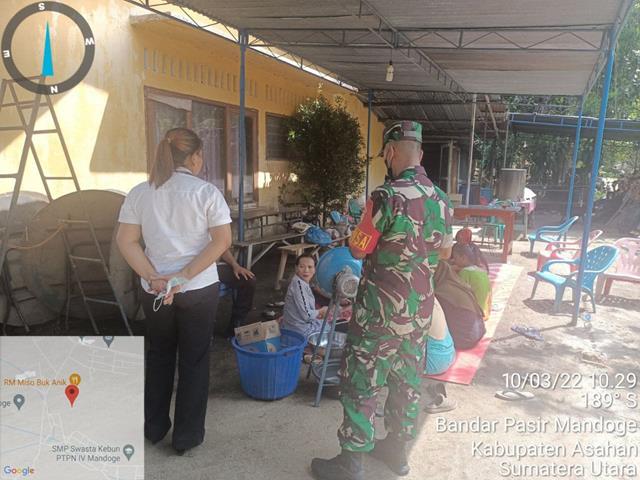 Asahan | Dalam rangka memutus covid-19, dalam hal ini seperti yang dilakukan oleh Personel Bintara Pembina Desa (Babinsa) Koramil 14/Bandar Pasir Mandoge jajaran Kodim 0208/Asahan Sertu L.Siringo ringo turun kewilayah binaan untuk melaksanakan kegiatan anjangsana untuk memberikan himbauan kepada Warga yang belum melaksanakan Vaksinasi agar melaksanakn Vaksinasi disaat ada pelaksanaan Vaksin diwilayah desa binaan tersebut bersama dengan Babinkamtibmas Aipda Jakaria Saragih, Tim Nakes Ibu.Ernani Br.Simanjuntak dan Masyarakat Desa Bandar Pasir Mandoge, kegiatan tersebut yang dilaksanakan bertempat di Dusun X Desa Bandar Pasir Mandoge Kecamatan Bandar Pasir Mandoge Kabupaten Asahan, Kamis (10/03/2022).