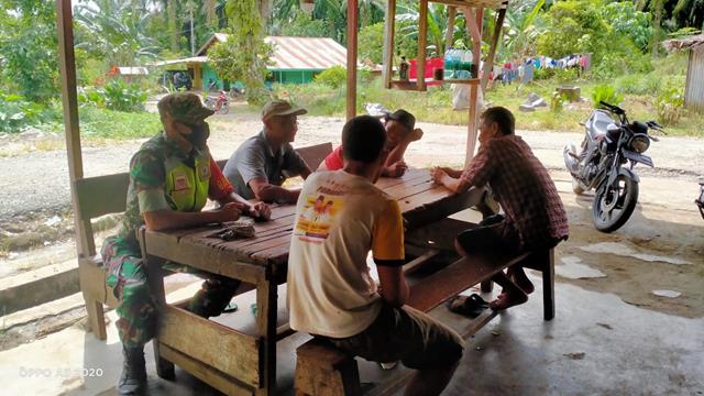 Simalungun  |  Dalam rangka untuk menciptakan dan meningkatkan kerja sama yang baik, dan menjaga silatuhrahmi antara Babinsa dan Masyarakat serta untuk kemanunggalan TNI dan Rakyat, dalam hal ini Personel Bintara Pembina Desa (Babisna) Koramil 20/Sindar Raya jajaran Kodim 0207/Simalungun Sertu K Saragih turun kewilayah binaan untuk melaksanakan kegiatan menghimbau untuk menggunakan masker dengan masyarakat dalam rangk auntuk menghimbau Masyarakat agar Menggunakan Masker Guna Memutus mata Rantai.Penyebaran Virus Covid-19, kegiatan tersebut yang dilaksanakan bertempat di Nagori Bah Tonang Kecamatan Raya Kahean Kabupaten Simalungun, Selasa (30/11/2021).