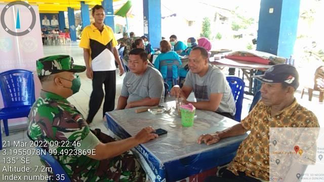 Batu Bara | Komunikasi sosial yang dilakukan merupakan wadah silahturahmi antara Babinsa dengan tokoh agama sekitar, yang dapat memupuk kebersamaan dan menimbulkan rasa saling hormat antar sesama pemeluk agama di wilayah desa binaan, dalam hal ini seperti yang dilakukan oleh Personel Bintara Pembina Desa (Babinsa) Koramil 03/Lima Puluh jajaran Kodim 0208/Asahan Sertu A. Malau turun kewilayah desa binaan untuk melaksanakan kegiatan Komunikasi Sosial (Komsos) bersama dengan Tokoh Agama dan Masyarakat dalam rangka untuk membahas permasalahan keamanan lingkungan di wilayah Desa Simpang Dolok, kegiatan ini juga turut serta dihadiri oleh Kades Simpang Dolok Bapak Usman, Kadus 3 Bapak M. Manurung dan Masyarakat Desa Simpang Dolok, kegiatan tersebut yang dilaksanakan bertempat di Pajak Simpang Dolok Kecamatan Datuk Lima Puluh Kabupaten Batu Bara, Senin (21/03/2022).
