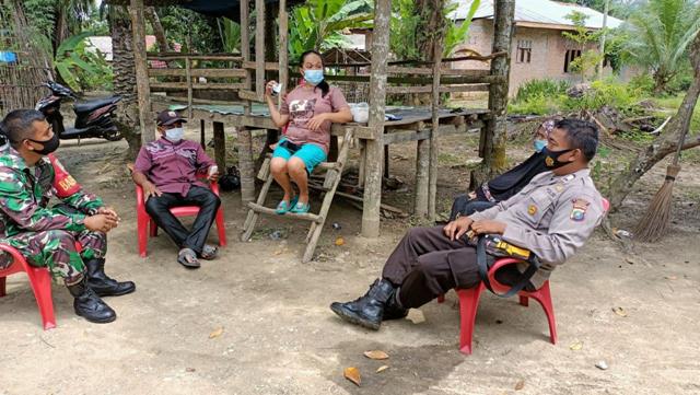 Brandan Barat –  Babinsa Koramil 18/Brandan Barat Kodim 0203/Langkat Sertu Ade Wangso bersama Bhabinkamtibmas Pangkalan Brandan melaksanakan komsos bersama warga untuk mengkampanyekan 3 M (Memakai masker, Mencuci tangan dengan sabun dan Menjaga jarak) kepada warga binaan yang bertempat di Desa Lubuk Kasih Kec. Brandan Barat  Kabupaten Langkat, Jumat ( 17/09/2021).