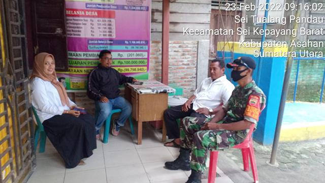 Asahan  |  Dalam rangka meningkatkan sinergitas di wilayah binaanya, dalam hal ini seperti yang dilakukan oleh Personel Bintara Pembina Desa (Babinsa) Koramil 10/Sei Kepayang jajaran Kodim 0208/Asahan Serma Dtm Husni turun kewilayah binaan untuk melaksanakan kegiatan Komunikasi Sosial (Komsos) bersama dengan Kaur Desa dan Kadus Desa Sei Tualang Pandau dalam rangka agar terjalinnya hubungan yang harmonis antara Babinsa Koramil 10/Sei Kepayang dengan Kaur Desa maupun Kadus, kegiatan tersebut yang dilaksanakan bertempat di Depan Kantor Desa Sei Tualang Pandau Kecamatan Sei Kepayang Barat Kabupaten Asahan, Rabu (23/02/2022).