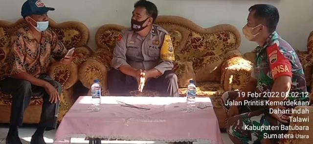 Batu Bara | Dalam rangka untuk menciptakan dan meningkatkan kerja sama yang baik, dan menjaga silatuhrahmi antara TNI, dan masyarakat untuk menciptakan kemanunggalan TNI dan Rakyat, seperti halnya yang dilakukan oleh Personel Bintara Pembina Desa (Babinsa) Koramil 04/Talawi jajaran Kodim 0208/Asahan Sertu Harianto turun kewilayah binaan untuk melaksanakan kegiatan Komunikasi Sosial (Komsos) bersama dengan Mitra Kerja Babinkamtibmas dengan Tokoh Masyarakat diwilayah binaan dalam rangka untuk menciptakan dan meningkatkan kerja sama yang baik, dan menjaga silatuhrahmi antara TNI POLRI serta untuk menciptakan kemanunggalan TNI dan Rakyat, kegiatan tersebut yang dilaksanakan bertempat di Dusun Bunga Melati Desa Dahari Indah Kecamatan Talawi Kabupaten Batu Bara, Senin (15/11/2021).