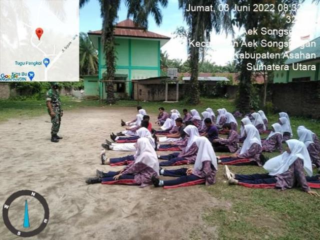 Asahan | Dalam rangka untuk menjalin Silaturahmi diwilayah binaan dengan melaksanakan Komunikasi Sosial (Kosmos) merupakan salah satu program kerja yang harus dilaksanakan oleh setiap aparat Teritorial (babinsa) di wilayah binaan. Seperti halnya yang dilakukan oleh Personel Bintara Pembina Desa (Babinsa) Koramil 15/Bandar Pulau jajaran Kodim 0208/Asahan Serda Tumirin Purnomo turun kewilayahbinaan untuk melaksanakan kegiatan Komunikasi Sosial (Komsos) kepada Siswa siswi Madrasah Tsanawiyah Aek Songsongan dengan memberikan arahan tentang Membiasakan hidup disiplin, dengan harapan apa yang di cita-citakan tercapai serta menjadi Kebanggaan orang tua, berguna untuk Nusa dan Bangsa serta Agama, bersama dengan Ibu Hennyi halawati kepsel Madrasah Tsanawiyah Aek Songsongan dan Para Siswa Siwswi Madrasah Tsanawiyah Aek Songsongan, kegiatan tersebut yang dilaksanakan bertempat di Dusun lV Desa Aek Songsongan Kecamatan Aek Songsongan Kabupaten Asahan, Jumat (03/06/2022).