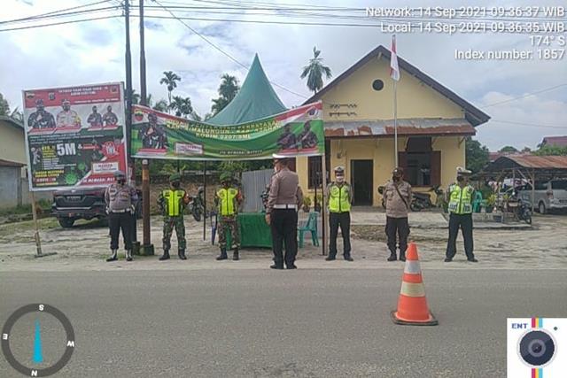 Simalungun  |  Dalam rangka Pemerlakuan Penyekatan dan Pengalihan dari Petugas Gabungan dengan melaksanakan Penyekatan dalam rangka Pemberlakuan Pembatasan Kegiatan Masyarakat (PPKM) Level lll serta Penegakan Disiplin Protokol Kesehatan, dalam hal ini Personel Bintara Pembina Desa (Babinsa) Koramil 10/Balimbingan jajaran Kodim 0207/Simalungun Sertu M.B. Siregar dan Serda Richard Purba bersama Dinas Terkait, diantaranya adalah TNI (Personel Kodim 0207/Simalungun) : 2 orang, Polisi (Polsek Tanah Jawa) : 5 orang dengan jumlah : 7 orang, DPP : IPTU  J Silalahi. Pada pelaksanaan kegiatan tersebut turun kewilayah binaan untuk melaksanakan Ops Penyekatan dan Pengalihan arus lalu lintas dalam rangka PPKM Level lll, kegiatan tersebut yang dilaksanakan bertempat di Jln besar Tanah Jawa – Siantar, menghimbau Masyarakat untuk memakai Masker dan menjaga Protokol Kesehatan, Selasa (14/09/2021).