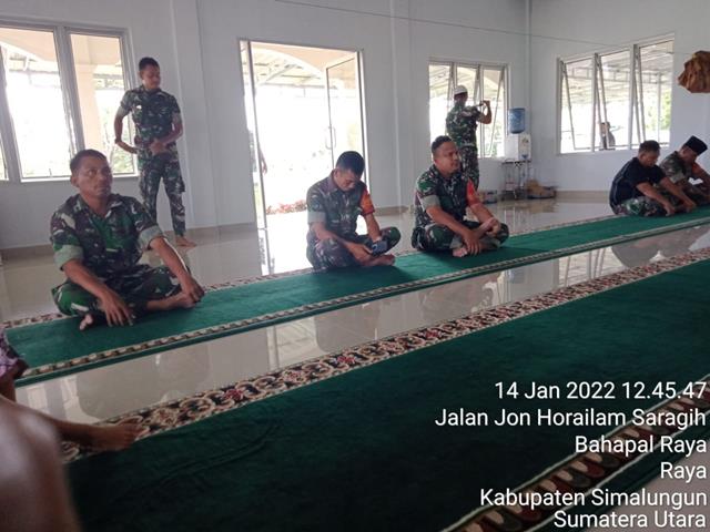 Simalungun | Melepaskan Kewajiban sejenak sebagai Prajurit dan Sekaligus Benteng Keamanan NKRI, disela-sela waktu melaksanakan kewajiban sebagai seorang Bintara Pembina Desa, Sholat jumat merupakan kewajiban seorang umat muslim, melaksanakan sholat jumat di Desa binaan, disamping sebagai ajang berkomunikasi serta mempererat tali silaturohim kepada warga binaan khususnya kepada tokoh agama dan jamaah. juga sebagai tempat untuk memberikan sosialisasi tentang himbauan terkait pencegahan penyebaran Covid19, untuk mematuhi aturan protokol kesehatan tentang pelaksanaan sholat Jum’at di masjid, dan himbauan kamtibmas termasuk bertukar pikiran tentang masalah keamanan di wilayah binaan.
