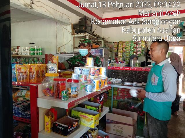 Asahan | Ditengah pandemi Covid-19 yang masih berlangsung, kegiatan Koramil 15/Bandar Pulau, Personel Babinsa Serda Hamzah melaksanakan monitoring harga sembako di warung Pak Jumain (34) yang dimana minyak goreng masih langka didapat dan harganya masih mahal, kegiatan tersebut yang dilaksanakan bertempat di Dusun I Desa Marjanji Aceh, Kecamatan Aek Songsongan, Kabupaten Asahan, Jumat (18/02/2022).