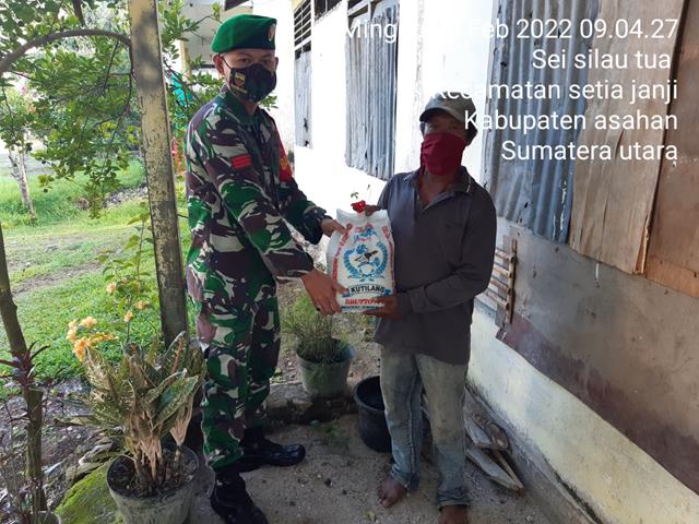 Asahan  |  Sebagai bentuk pembinaan teritorial maka Bintara Pembina Desa Koramil 13/Buntu Pane, Praka Febri Yanto turut serta melaksanakan kegiatan anjangsana Kerumah Bapak Sakino Warga Desa Binaan yang kurang mampu(Fakir miskin). Giat tersebut berlokasi di Desa Sei Silau Tua, Kecamatan Setia Janji, Kabupaten Asahan, Minggu (20/02/2022).