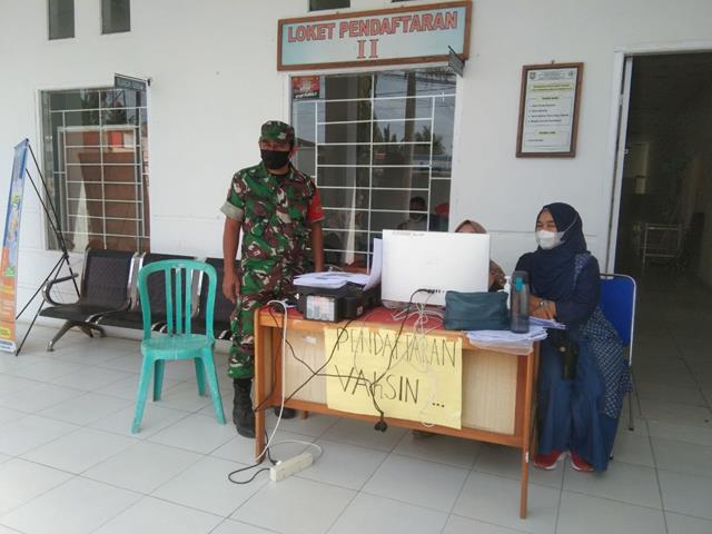 Asahan  |  Demi mengurangi penyebaran Covid-19 maka, Babinsa Koramil 07/Air Joman jajaran Kodim 0208/Asahan, Serka Syahdan turut serta melaksanakan pendampingan giat vaksin covid-19 Dosis-I, II & III Jenis Sinovac, Astrazeneca, Pfizer di wil Koramil 07/Air Joman. Giat tersebut berlokasi di Puskesmas Binjai Serbangan Jalan Protokol, Kelurahan Binjai Serbangan, Kecamatan Air Joman, Kabupaten Asahan, Sabtu (19/02/2022).