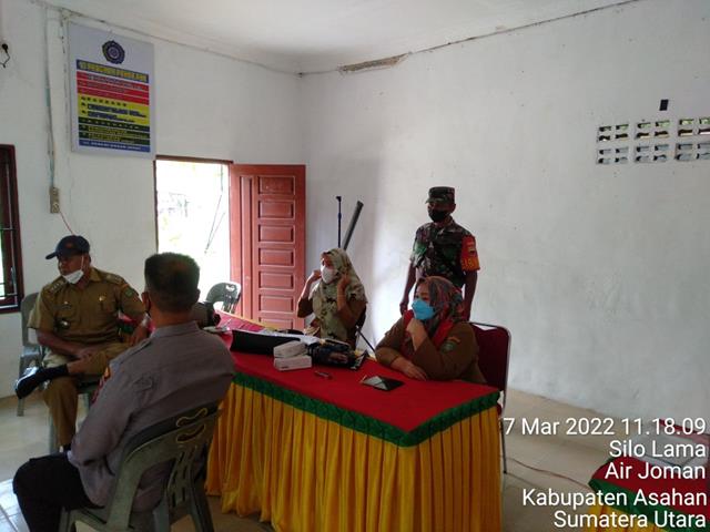 Asahan  |  Pemerintah saat ini terus menggencarkan upaya vaksinasi bagi para lansia di seluruh Indonesia. Bahkan aparat TNI-Polri pun diminta untuk mengawal berjalannya vaksinasi, dalam hal ini seperti yang dilakukan oleh Personel Bintara Pembina Desa (Babinsa) Koramil 07/Air Joman jajaran Kodim 0208/Asahan Serma Ifan Desmar dan Serda A. H. Barus serta bersama dengan Tim Nakes Puskesmas Binjai Serbangan dan Puskesmas Silau Laut dalam rangka untuk melaksanakan vaksin covid-19 utk Lansia dan masyarakat umum, kegiatan tersebut yang dilaksanakan bertempat di Balai Desa Silo Bonto Kecamatan Silau Laut Kabupaten Asahan dan di Puskasmas Binjai Serbangan Kecamatan Air Joman Kabupaten Asahan, Senin (07/03/2022).