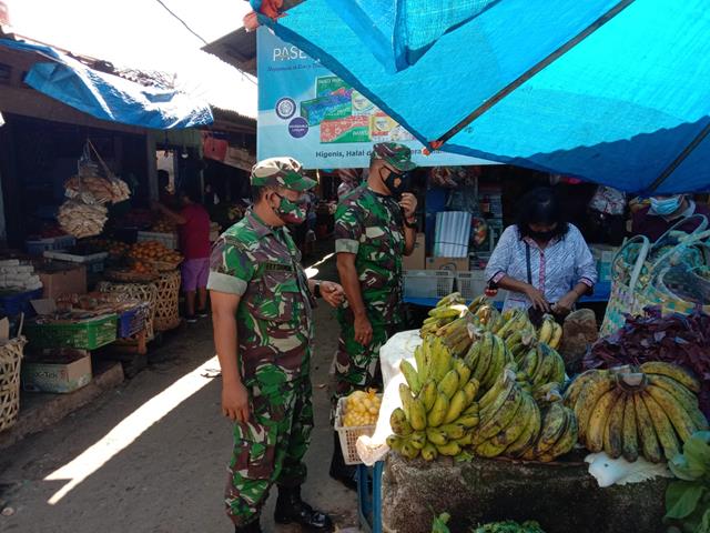 Pematang Siantar | Kami para Babinsa secara rutin menggelar kegiatan patroli tersebut untuk selalu mengingatkan warga akan pentingnya Penerapan Protokol Kesehatan diwilayah binaan, dalam hal ini seperti saat ini yang dilakukan oleh Personel Bintara Pembina Desa (Babinsa) Koramil 01/Siantar Utara jajaran Kodim 0207/Simalungun Serka HRP. Sihombing dan Serda Saji turun kewilayah binaan untuk melaksanakan kegiatan PPKM Penegakan Disiplin Protokol Kesehatan dengan cara mensosialisasikan kepada warga masyarakat pentingnya pakai masker diwilayah binaan dengan menghimbau kepada masyarakat agar tetap memakai masker dan mencuci tangan utk mencegah penyebaran Virus Corona (Covid-19), kegiatan tersebut yang dilaksanakan bertempat di Pasar Dwikora Parluasan Jalan Pantuan Nagari Kecamatan Siantar Utara Kota Pematangsiantar, Senin (28/03/2022).