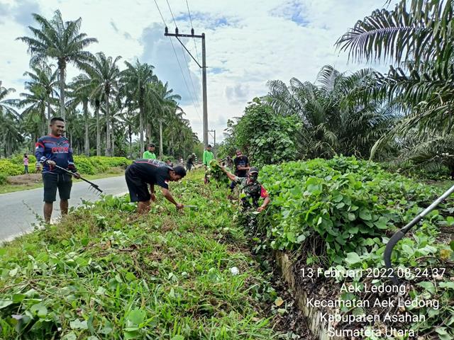 Asahan | Dalam rangka melestarikan budaya warisan leluhur yaitu hidup bergotong royong, dalam hal ini Personel Bintar Pembina Desa (Babinsa) Koramil 16/Pulau Rakyat jajaran Kodim 0208/Asahan Sertu Surono turun kewilayah desa binaan untuk melaksanakan kegiatan Gotong-royong dalam rangka Jum’at bersih bersama warga masyarakat desa binaan dengan sasaran Gotong Royong membersihkan aliran air/Parit yg semak sepanjang 500 meter adalah untuk memperlancar saluran air agar tidak terjadi genangan air dan banjir di pemukiman warga terutama dimusim penghujan, kegiatan tersebut yang dilaksanakan bertempat di Dusun 5 Desa Aek Ledong Kecamatan Aek Ledong Kabupaten Asahan, Minggu (13/02/2022).