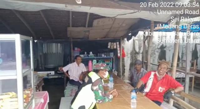 Asahan  |  Terjalinnya hubungan tali silaturrahmi yang harmonis antara Babinsa dengan warga Masyarakat melalui Komunikasi Sosial Babinsa lebih dekat dengan warga di wilayah binaan, seperti yang dilakukan oleh Personel Bintara Pembina Desa (Babinsa) Koramil 01/Medang Deras jajaran Kodim 0208/Asahan Serda Supriadi turun kewilayah binaan untuk melaksanakan kegiatan Komunikasi Sosial (Komsos) bersama dengan masyarakat Desa binaan selaku mitra karib dan menghimbau agar melaksanakan vaksin bagi warga yang belum vaksin dosis 2 maupun vaksin boster, agar tetap memakai masker apabila keluar rumah bersama dengan Bapak Suraidi Mansyah, Bapak Kasman dan Bapak Sanding, kegiatan komsosnya tersebut yang dilaksanakan bertempat di Desa Sei Rakyat Kecamatan Medang Deras Kabupaten Batu Bara, Minggu (20/02/2022).