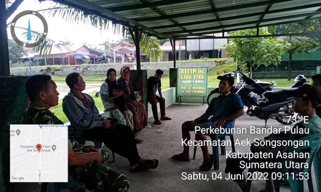 Asahan  |  Dalam rangka menjaga keamanan dan ketertiban di wilayah binaan, dalam hal ini seperti yang dilakukan oleh Personel Bintara Pembina Desa (Babinsa) Koramil 15/Bandar Pulau jajaran Kodim 0208/Asahan Serma Sukarman turun kewilayah binaan untuk membantu penyelesaian masalah kekerasan dalam rumah tangga (KDRT) warga binaan Desa Aek Bamban dalam rangka Mediasi bertujuan untuk mencegah timbulnya permasalahan rumah tangga dan mengatasi dengan musyawarah secara kekeluargaan tanpa keributan, bersama dengan Bapak Gino (Kadus 1), Ibu Suri dan Bapak Iqbal, kegiatan tersebut yang dilaksanakan bertempat di Makoramil 15/Bandar Pulau Kecamatan Aek Songsongan Kabupaten Asahan, Sabtu (04/06/2022).