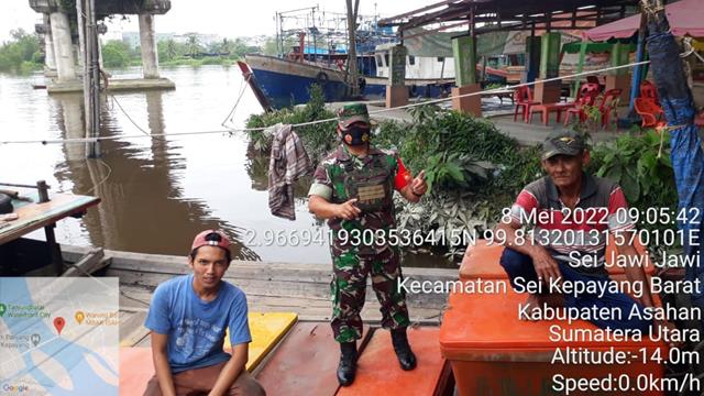 Asahan | Dalam rangka untuk menjalin Komonikasi dan Silaturahmi yang baik antara masyarakat sei Jawi Jawi dengan Babinsa Koramil 10/SK guna mempererat tali silaturahmi dan meningkatkan rasa persaudaraan antara Babinsa dengan warga masyarakat Desa binaan, dalam hal ini seperti yang dilakukan oleh Personel Bintara Pembina Desa (Babinsa) Koramil 10/Sei Kepayang jajaran Kodim 0208/Asahan Serda Yuspa K turun kewilayah binaan untuk melaksanakan kegiatan Komunikasi Sosial sekaligus Anjangsana ke rumah warga Masyarakat diwilayah binaan dalam rangka untuk turut serta melaksanakan kegiatan Silaturahmi halal bihalal hari raya Idul Fitri 1 Syawal 1443 H, kegiatan ini sebagai wujud Silaturahim Babinsa dengan warga binaanya saat perayaan Lebaran Idul Fitri 1 Syawal 1443 H, kegiatan tersebut yang dilaksanakan bertempat di Nelayan Desa Sei Jawi Jawi Kecamatan Sei Kepayang Barat Kabupaten Asahan, Minggu (08/05/2022).