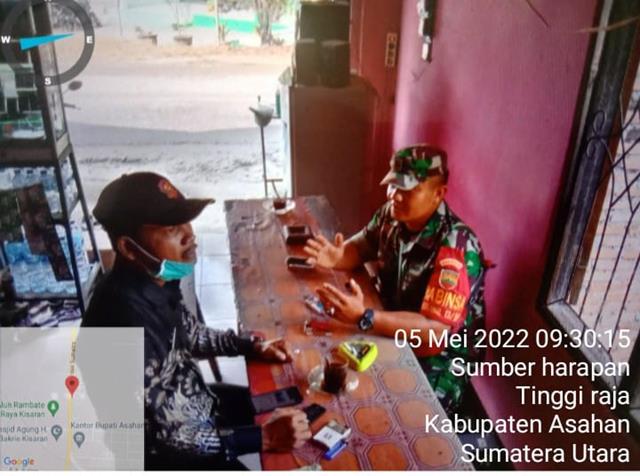 Asahan  |  Agar masyarakat dan TNI dapat berbaur,serta terjalin nya kerja sama yang baik antara TNI-Rakyat dalam rangka pencegahan penyebaran Wabah Virus Corona (Covid-19), dalam hal ini seperti yang dilakukan oleh Personel Bintara Pembina Desa Koramil 13/Buntu Pane jajaran Kodim 0208/Asahan Serda Ponimin turun kewilayah desa binaannya untuk melaksanakan Komunikasi Sosial (Komsos) bersama denganTokoh Masyarakat dengan Bapak H.haidir dan Mitra Karib untuk mempererat Hubungan antara Babinsa dan masyarkat apalagi masih dalam Suasana lebaran Seperti ini agar Silaturahmi lebih terjalin hubungan Komunikasi yang humanis dan baik dan mudah mendapatkan informasi perkembangan situasi di wilayah Desa Binaan, serta dalam rangka agar terciptanya Keharmonisan dan keakraban antara masyarakat dengan TNI, kegiatan tersebut yang dilaksanakan bertempat di Dusun 4 Pasir Putih Desa Sumber Harapan Kecamatan Tinggi Raja Kabupaten Asahan, Kamis (05/05/2022).