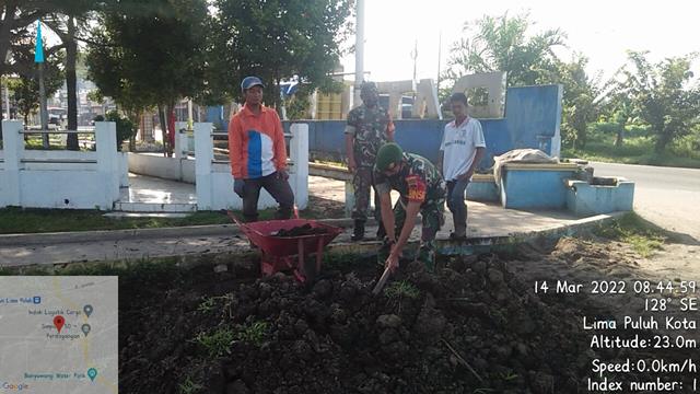 Pada kesempatan tersebut Babinsa Sertu Supendi bersama warga masyarakat melaksanakan kegiatan kerja bakti sosial membersihkan jalan dan parit serta membersihkan halaman dan membuat taman, Babinsa mengatakan kegiatan kerja bakti ini merupakan upaya bersama dalam mewujudkan kepedulian terhadap kebersihan lingkungan di Jalan Besar Lima Puluh Kota Kecamatan Lima Puluh, terangnya.