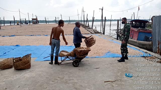Asahan | Menurut buku “Makanan Tradisional Indonesia: Kelompok Makanan Fermentasi dan Makanan yang Populer di Masyarakat, dalam hal ini untuk menjalin silaturahmi dengan warga binaan yang tergabung dalam pengusaha Terasi tersebut maka dari itu Personel Bintara Pembina Desa (Babinsa) Koramil 08/Pulau Buaya jajaran Kodim 0208/Asahan Serda Faisal Lubis turun kewilayah desa binaan untuk melaksanakan kegiatan Komunikasi Sosial (Komsos) bersama dengan pekerja gudang terasi dwilayah binaan bersama dengan Bapak Anto dan Bapak Sangkot, kegiatan tersebut yang dilaksanakan bertempat di Dusun 2 Desa Bagan Baru Kecamatan Tanjung Balai Kabupaten Asahan, Selasa (07/09/2021).