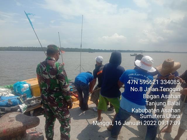Asahan | Babinsa menghimbau para pekerja bongkar muat barang ikuti aturan (SPSI) jangan sampai di luar peraturan ,kalau ada armada yang akan menurunkan barang di wilayah kota ongkos bongkar atau muat terlalu tinggi sehingga timbul perselisihan dengan pengusaha. Maka dari itu jaga situasi dan kondisi wilayah yang aman dan kondusif, seperti halnya yang dilakukan oleh Personel Bintara Pembina Desa (Babinsa) Koramil 08/Pulau Buaya jajaran Kodim 0208/Asahan Koptu M. Harahap turun kewilayah binaan untuk melaksanakan kegiatan Komunikasi Sosial (Komsos) bersama dengan pekerja SPSI serta mengingatkan agar tetap mematuhi Prokes guna mencegah penularan Covid-19 bersama dengan Bapak Zaelani (Ketua SPSI), Bapak Heri (Anggota SPSI), Bapak Amir (Anggota SPSI) dan Bapak Daro (Anggota SPSI), kegiatan tersebut yang dilaksanakan bertempat di Pelabuhan Panton Desa Bagan Asahan Kecamatan Tanjung Balai Kabupaten Asahan, Minggu (16/01/2022).