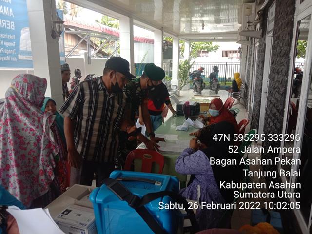 Asahan | Vaksin Covid-19 ini aman dan halal, jadi saya harap warga tenang dan jangan percaya isu hoax yang berkembang di media sosial, Efek samping dari Vaksinasi ini biasanya hanya sedikit mengantuk dan perasaan lapar saja karena saya sudah di vaksinasi jadi saya sudah merasakannya, dalam hal ini seperti yang dilakukan oleh Personel BIntara Pembina Desa (Babinsa) Koramil 08/Pulau Buaya jajaran Kodim 0208/Asahan Serda Faisal Lubis turun kewilayah binaan untuk melaksanakan kegiatan pendampingan Vaksinasi untuk dosis 1,2 dan Booster bersama dengan Ibu Sagala (vaksinator), Ibu Siti (Vaksinator), Babinsa dan Babinkamtibmas, kegiatan tersebut yang dilaskanakan bertempat di Puskesmas di Desa Bagan Asahan Kecamatan Teluk Nibung Tanjung Balai Asahan Kabupaten Asahan, Sabtu (26/02/2022).