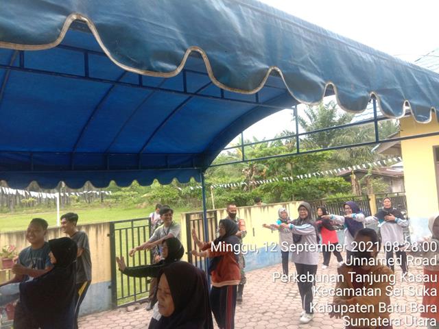 Batu Bara | Dalam upaya mempererat silaturahmi terus dilakukan para Babinsa di wilayah binaannya, seperti halnya yang dilakukan oleh Personel Intara Pembina Desa (Babinsa) Koramil 02/Air Putih jajaran Kodim 0208/Asahan Serda Anwar Sadat turun kewilayah desa binaan untuk melaksanakan senam pagi bersama ibu ibu lansia dan mahasiswa UMSU, bersama dengan Kades Bapak Suherl, Kaur Desa Bapak Yogi, Warga Desa dan Mahasiswa UMSU, kegiatan tersebut yang dilaksanakan bertempat di Kantor Kepala Desa Perkebunan Tanjung Kasau Kecamatan Laut Tador Kabupaten Batu Bara, Minggu (12/09/2021).