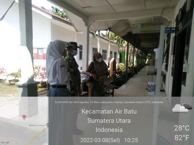 Asahan  |  Dampak Pandemi Covid-19 sangat berpengaruh terhadap dunia pendidikan, kualitas pendidikan menjadi tantangan nyata di tengah Pandemi, hal tersebut tertuju pada proses belajar mengajar antara guru dan murid, dalam mendukung tugas pokok serta terwujudkan Kemanunggalan TNI dengan Rakyat, dalam hal ini seperti yang dilakukan oleh Personel Bintara Pembina Desa (Babinsa) Koramil 12/Air Batu jajaran Kodim 0208/Asahan Serma P. Arif W turun kewilayah binaan untuk melaksanakan kegiatan Komunikasi Sosial (Komsos) bersama Dewan Guru dalam rangka untuk membahas tentang perkembangan program vaksinasi yang sudah dilakukan terhadap siswa didik, kegiatan tersebut yang dilaksanakan bertempat di SMA Negeri 1 Air Batu Jalan Pendidikan Dusun I Desa Sei Alim Ulu Kecamatan Air Batu Kabupaten Asahan, Selasa (08/03/2022).