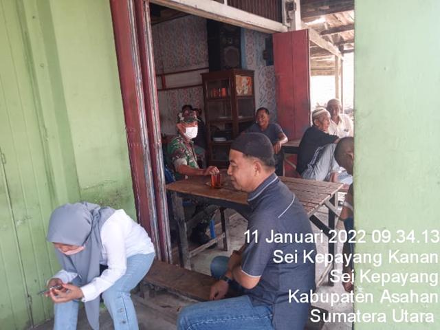 Asahan | Untuk menjalin silahturahmi dengan masyarakat agar semakin akrab hubungan antara TNI Dan Rakyat serta ingatkan warga agar tetap disiplin protokol kesehatan Covid-19, dalam hal ini Personel Bintara Pembina Desa Koramil 10/Sei Kepayang jajaran Kodim 0208/Asahan Serka J H Lubis turun langsung kewilayah desa binaan untuk melaksanakan Komunikasi Sosial (Komsos) bersama dengan warga agar mematuhi Prokes dengan cara menjaga jarak, mencuci tangan dan memakai masker jika keluar rumah guna memutus mata rantai penyebaran virus Covit-19 dalam rangka agar terjalinnya hubungan Komunikasi yang baik antara masyarakat dan Babinsa di Wilayah Binaan, kegiatan tersebut yang dilaksanakan bertempat di Dusun 3 Desa Sei Kepayang Kanan Kecamatan Sei Kepayang Kabupaten Asahan, Jumat (11/02/2022).