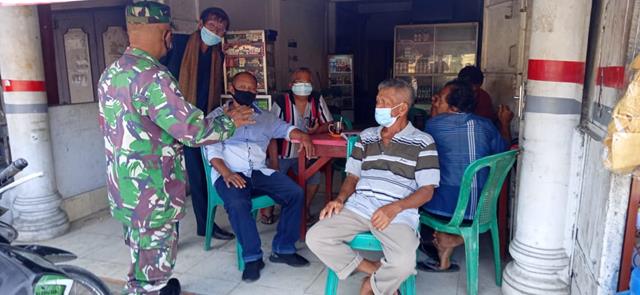 Seperti yang dilakukan oleh Babinsa Serma Ambrin dengan cara melaksanakan komsos bersama warga, dalam komsosnya Babinsa Serma Ambrin memberikan himbauan kepada warganya agar selalu mengikuti protokol kesehatan yang telah di tetapkan oleh pemerintah dengan cara selalu menggunakan masker pada saat berada di luar rumah serta menjaga jarak dan selalu melakukan cuci tangan dengan sabun, kegiatan PPKM terkait tentang Protokol Kesehatan, menghimbau kepada warga dan pengguna kendaraan agar selalu Memakai masker, Menjaga jarak, Menghindari kerumunan dan Mengurangi mobilitas dalam rangka Guna mencegah penyebaran virus covid 19.
