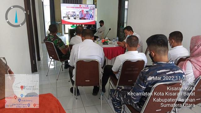 Mengikuti Zoom Meeting Dengan Kapolri Pelaksanaan Vaksinasi Oleh Danramil 06/KS Kodim 0208/Asahan