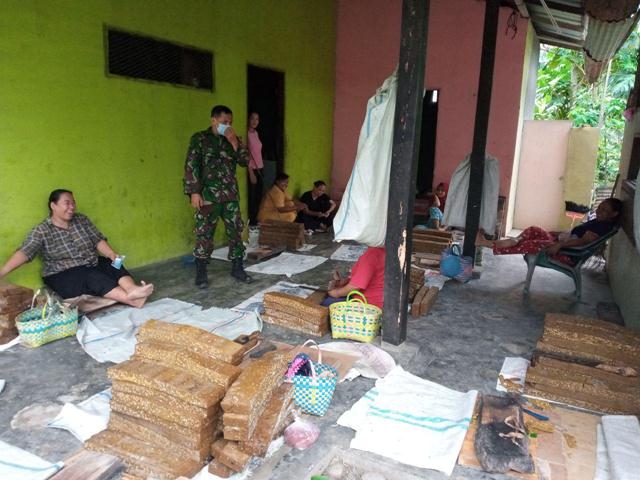 Setibanya di lokasi industri Kerupuk tempe, Babinsa mendapat sambutan hangat oleh Sdr Indra dan langsung turut serta membantu dalam melakukan pengolahan.